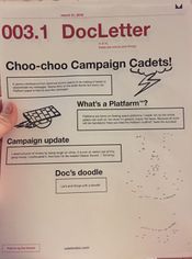 Campaign Cadets! The race is on! It's Chapter Three! And I'm fast! But how many roads must a Doc walk down? Votes are continuing upwards and my enemies are trapped in a time locked...trap! Ha! Let's keep it that way. I must not say too much due to my pesky enemies being illegal and stuff always. Anyways, campaign letters are on their way if you know where to look!