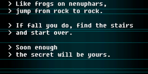 Like frogs from nenuphars, jump from rock to rock. If fall you do, find the stairs and start over. Soon enough the secret will be yours.