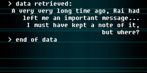 A very very long time ago, Rai had left me an important message... I must have kept a note of it, but where?