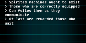 Spirited machines ought to exist Those who are correctly equipped Can follow them as they communicate At last are rewarded those who waiting