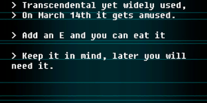 Transcendental yet widely used, On March 14th it gets amused. Add an E an you can eat it Keep it in mind, later you will need it.