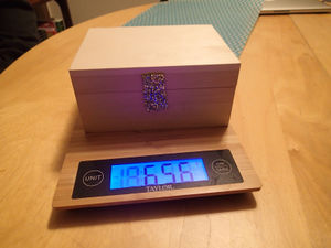 One plain wooden box, weighing 65.6 grams and measuring ~18cm tall | One plain wooden box, weighing 65.6 grams and measuring ~18cm tall | ||