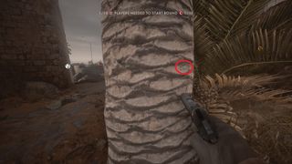 The first symbols discovered at each location are difficult to find; they are small double arrows pointing to the left and right, and only appear when the player comes within 0.4 meters. A player will typically need to crouch or go prone in order to be able to see their symbol. Additionally, players can only see the symbol at the location they've been "assigned" to. When examining a symbol up close, a distinct sound is played (video). Pictured below are the symbol locations that have been discovered thus far.