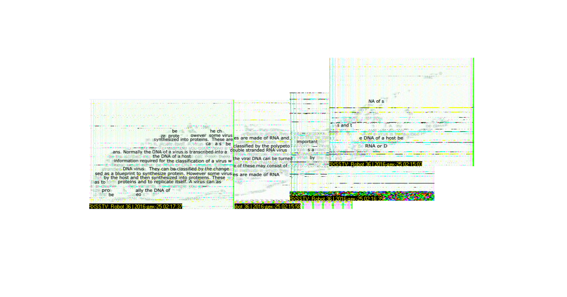 | current | 19:27, 3 January 2017 | 1,167 × 613 (434 KB) | Codex (talk | contribs) | SSTV images combined with some of the discernible text overlaid. |