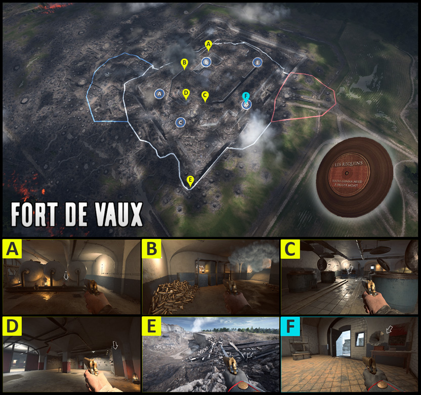 Locations of all of the records and the gramophone on Fort de Vaux.