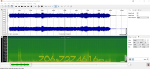 Tape 7's B-side consists entirely of garbled noise. When running the noise through a spectrogram, a sequence of characters can be clearly seen: