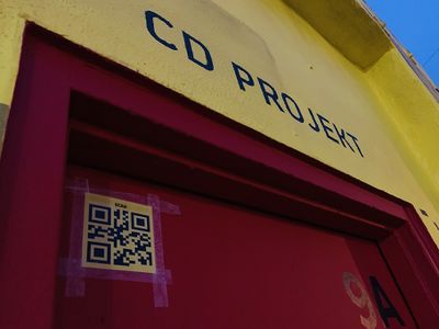 These numbers turned out to be the coordinates of a house across the street from CDPR's office in LA. This set players in motion, and before long they had obtained a picture of a QR code (pictured right) taped to CDPR's office door!