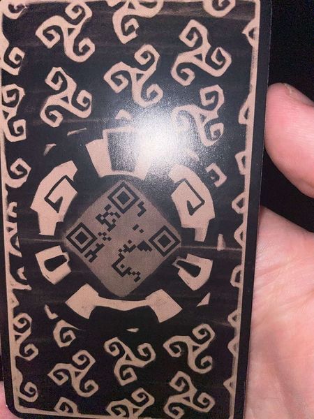 The back of the tarot card for the live drop in Cambridge, England (Runestone Basalt ARG in Old School RuneScape)