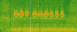 On 2018-07-08, the sound file played when calling the number from the cards handed out by the agents was changed. The new file can be found here. Spectrogram analysis of this file, pictured right, reveals a hidden code similar to the ones found in the rocket launch sound file. Decoding this code with the same method as the previous codes yields C7, another coordinate from the in-game map.