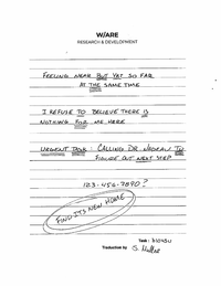 I have so many questions and Zheng’s not answering my calls. All he gave me is the list of his company’s research labs as well as one totally incomprehensible file. I need to get to know more about W/ARE. If you know this man, if you can get any opening into this company’s motives, please help me. For Arnaud’s life and potentially many others.