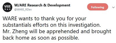 IMPORTANT MESSAGE FROM WARE RESEARCH AND DEVELOPMENT TEAM. Attention to all developers. One of our colleagues, Mr. Zheng, has gone missing a month ago while on a R&D tour. Serious investigation inside the department has lead to nothing of interest, and we’re now asking for outside help. Please send any information concerning his potential whereabouts to [email protected].