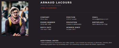 Hi, I'm Arnaud Lacours, the CEO and founder of Philo Jeux. I'm not here at the moment. Please give me your contact details and I will call you back later. Thanks a lot, bye.